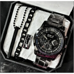 Specifications of Pack Of 4 /Only Watch Top Fashion Men’s Business Watch Deal -Elegant Mens Casual Watch +Chain Braclete +Heart Beat Ring+3D Bar Stick Locket-High Quality Business Watch In Random dial Design
